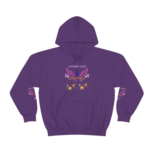 GODDESS GOOD DOUBLE SIDED Heavy Blend™ Hooded Sweatshirt with arm logos on both sleeves